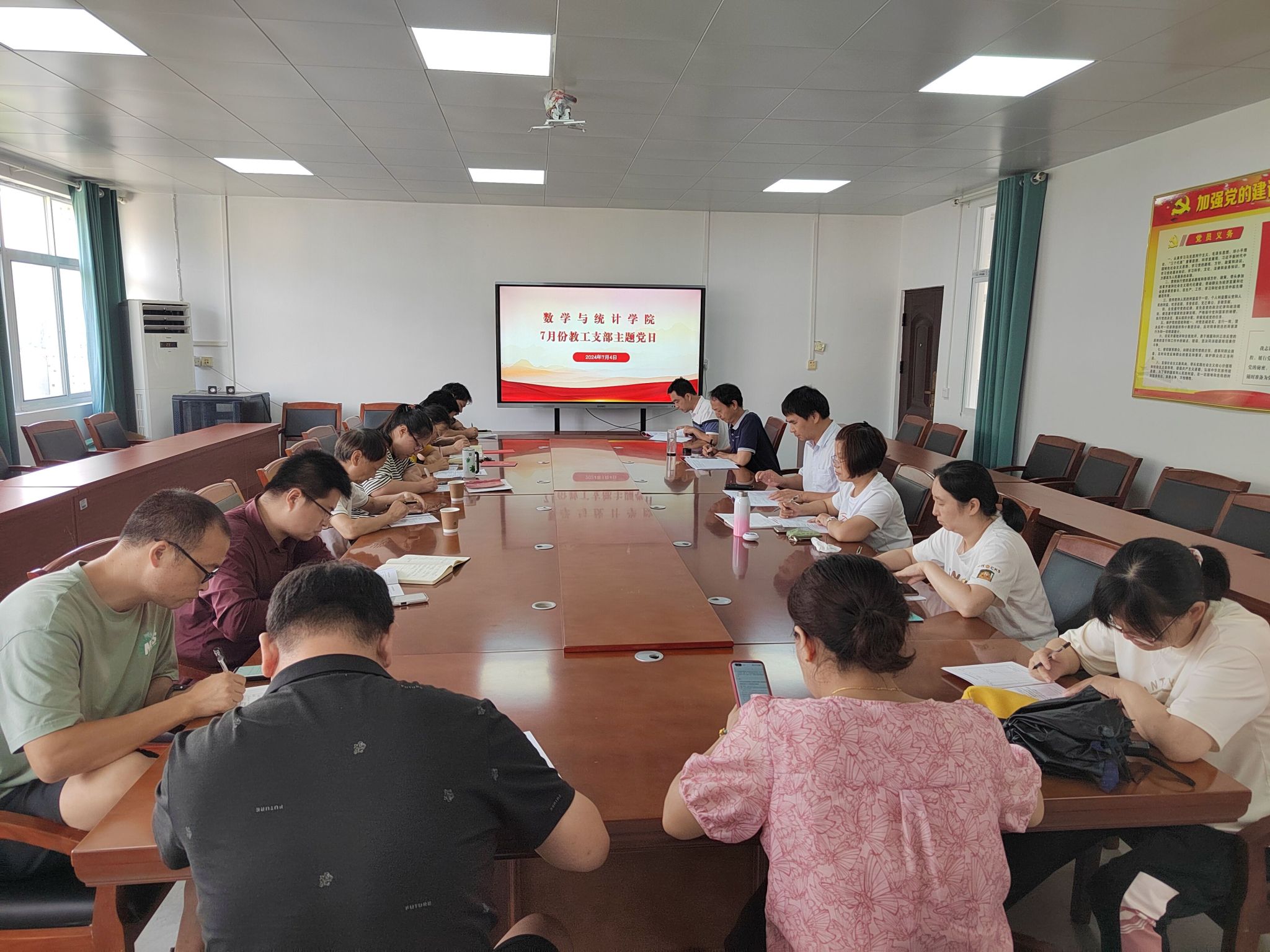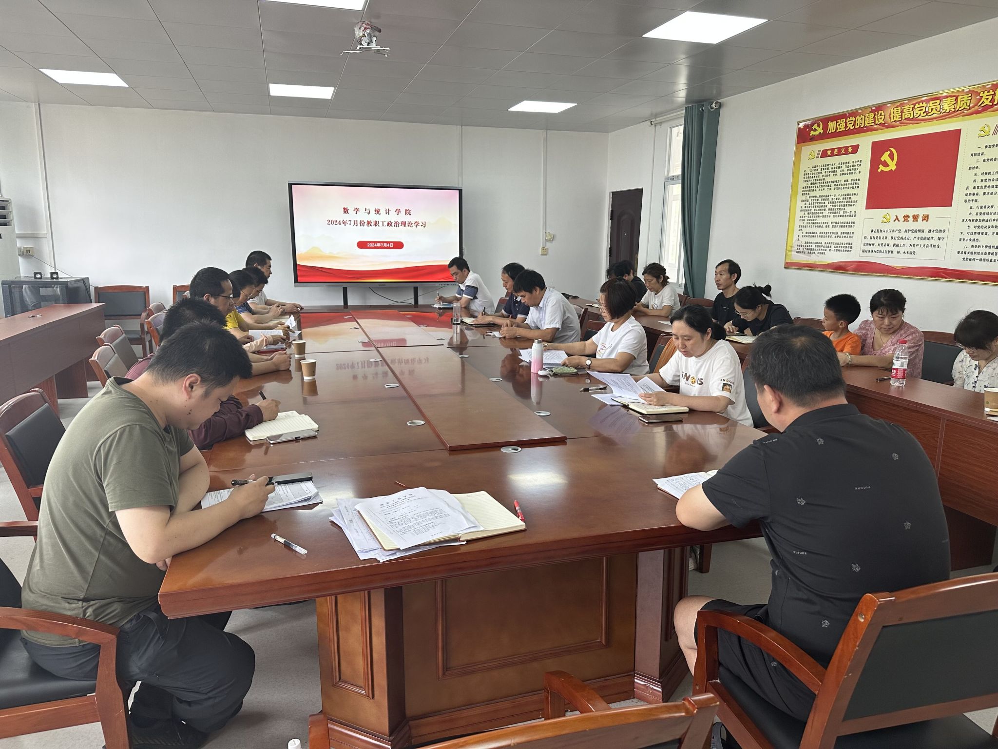 7月4日下午,数统学院在三楼会议室召开全体教职工大会暨七月份教职工政治理论学习会议,全体教职工参加学习,院党委书记王晶主持会议。
