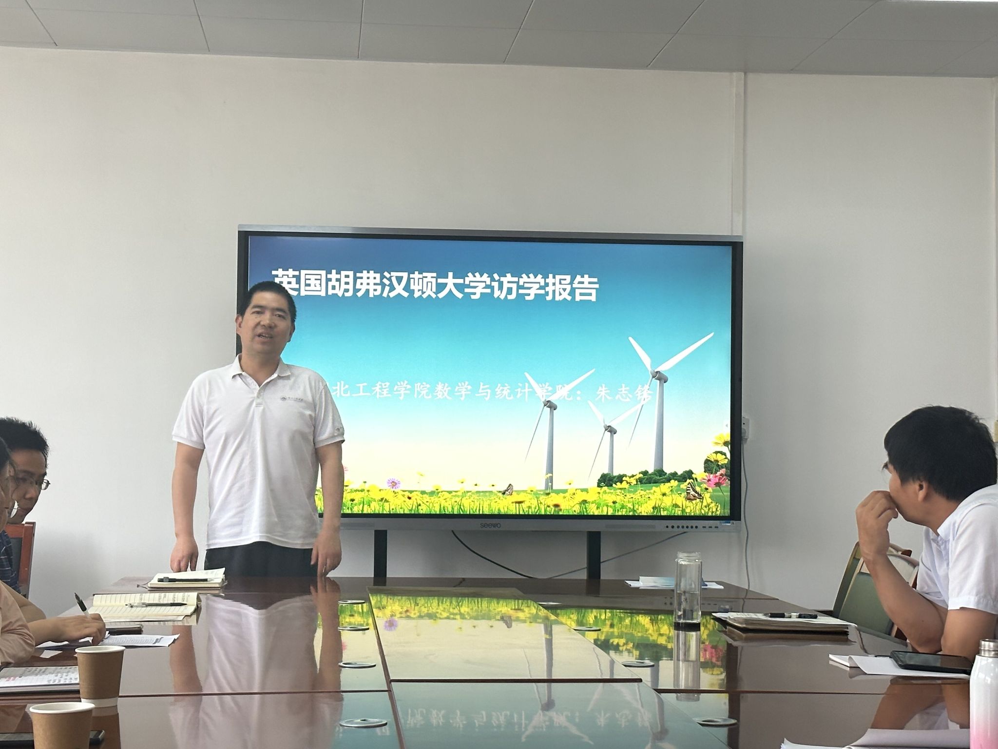 在随后的教职工大会上,学院副院长副书记根据分管工作对学期末、暑期、下学期初三个节点的重点工作进行了安排和部署;统计系主任朱志锋博士分享了在英国胡弗汉顿大学的访学经历和收获。