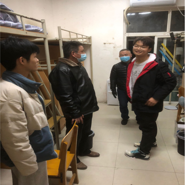 2月27日晚,Beat365唯一官方网站院长胡付高、党总支书记林先安、副院长张学新、党总支副书记艾明星等一行深入学生寝室,慰问春季返校学生,了解同学们返校的思想动态,传达学校疫情防控精神,为新学期开学做准备。全体辅导员、班主任参加了走访活动。