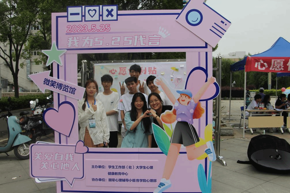 进一步推动大学生心理健康教育工作,提高学生的心理健康水平,普及心理健康知识,引导学生认知心理健康的重要性521日我院体育馆前开展以沐浴心灵,拥抱阳光为主题的心理活动。