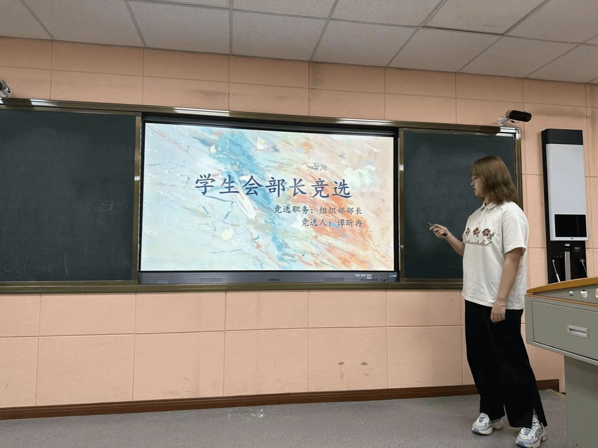 答辩开始,参与本次竞选的候选人纷纷上台展示自己,从自身特点、部门认知、对于分团委学生会的改进与未来等多个方面,展现出了自身的竞选优势。在每位同学答辩完毕之后,相应部门部长针对PPT内容和答辩人的自身情况等进行提问,更深层次的了解了竞选人的特长与优势。