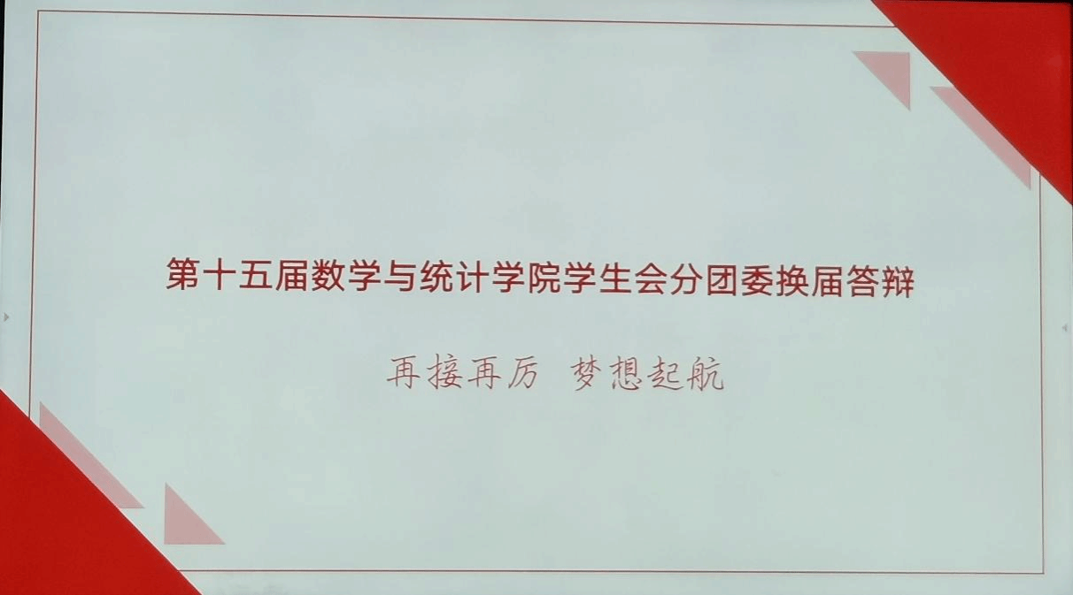 6月8日下午6点30分,Beat365唯一官方网站分团委学生会换届答辩在教六三楼会议室和智慧教室圆满举行。此次大会旨在通过换届答辩,完成学生会工作的交接,总结工作经验,使数统学院学生会优良的工作精神传承下去。数统学院团委书记郑放、辅导员马灵通和现任学生会主席团以及各部门部长出席了本次答辩。