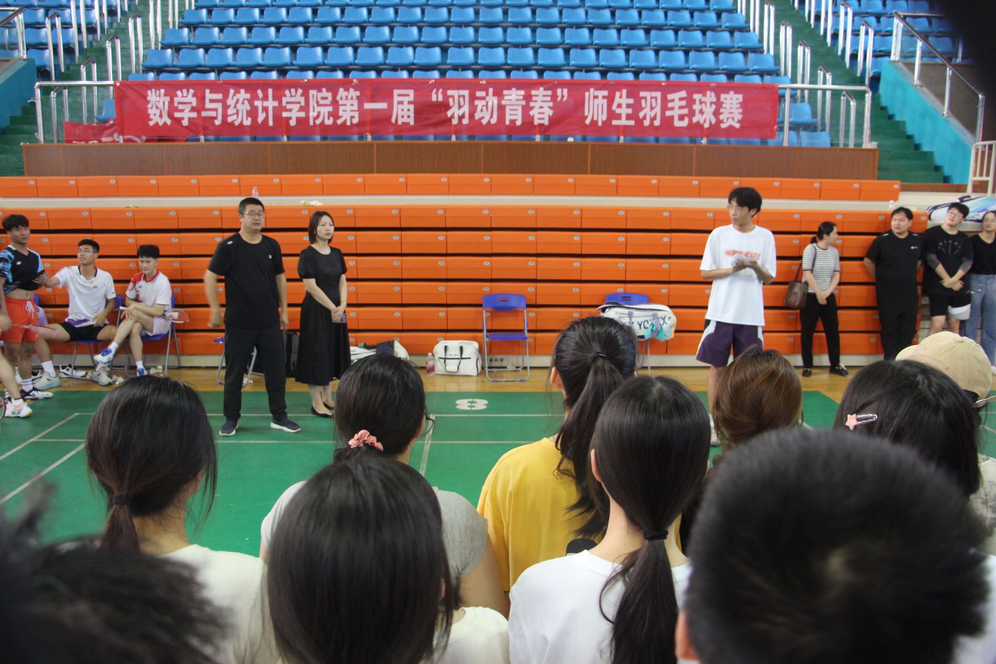 “羽”动青春,谁“羽”争锋,本次羽毛球比赛不仅是一场体育竞技的盛会,更是一次师生间交流和相互学习的机会。通过比赛,同学们不仅锻炼了身体,提高了球技,更加深了彼此之间的友谊,展现了数统学院学生积极向上、勇于拼搏的精神风貌。今后我院也将继续致力于举办更多丰富多彩的体育活动,为学生提供更多展示自我、挑战自我、增进友谊的平台,共同推动学院体育文化的发展。