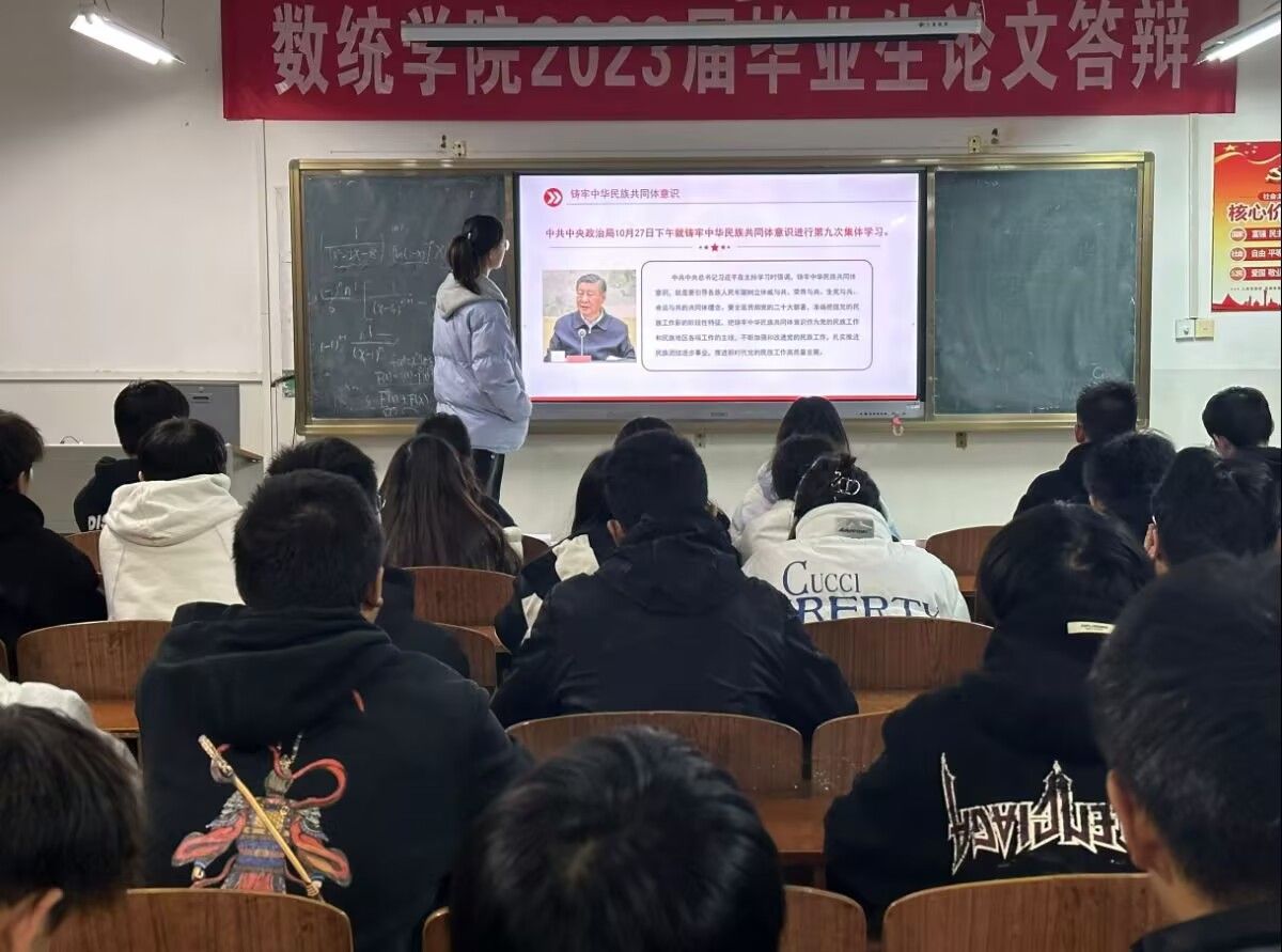 为深入贯彻落实习近平总书记关于筑牢中华民族共同体意识的重要讲话精神,11 月 24 日,数统学院各班级充分利用周日晚点评时间,积极开展了以筑牢中华民族共同体意识为主题的团日活动,在全院范围内掀起了民族团结进步教育的热潮。