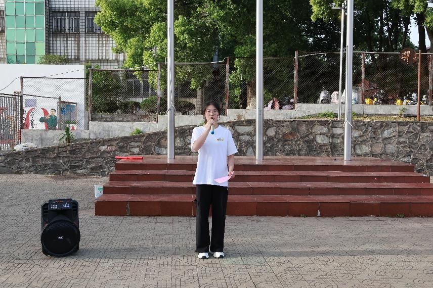 升旗礼毕,学生党员罗其伦以“数统青春心向党,砥砺奋进新征程”为题演讲,号召大家结合数学学科特色,将专业知识融入国家科技发展与经济建设。团员代表柯美琪为大家分享了陈景润潜心科研、矢志报国的感人事迹,鼓励学子以数学家陈景润为榜样,诠释“专业报国”的深刻内涵。