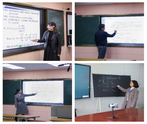 我院承担全校3000多名学生的公共数学教学工作,开设课程多、教学任务重,公共数学课程需要一步一步的计算过程,以及数学理论的推演证明,在课堂上不能只播放PowerPoint进行讲解。如何完美地把推导演算过程呈现给同学们,实现高效率、高质量的讲解?为学生上好每一节课,数统学院教师们动脑筋、勤思考,综合应用Seewo电子白板、触控笔、数位板、摄像头等工具,部分教师专门还自费购置了有相应功能的电子产品,打造丰富的数学网课应用场景,给学生们更好的课程体验。