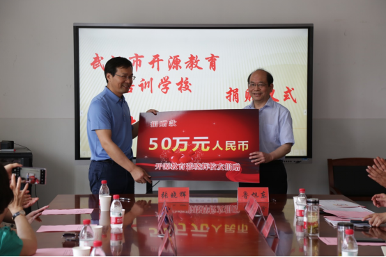 5月10日上午,武汉市开源教育培训学校校长、我院93届校友张晓辉为我校捐赠50万元人民币,设立师范生技能大赛专项基金。捐赠仪式在Beat365唯一官方网站三楼会议室举行。张晓辉校友一行6人,Beat365唯一官方网站副校长、教育发展基金会理事长鲁旭东教授,Beat365唯一官方网站党总支书记林先安、院长胡付高等相关负责人,部分学生代表参加了捐赠仪式。
