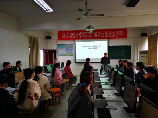 (本网讯:罗杰)3月20日上午8点,2021届毕业生答辩会在J6栋数统学院实验室举行。本次答辩按照专业分为两个小组,组长分别为肖应雄教授和潘保国博士。学校教务处主管论文工作肖华清副处长现场指导答辩工作。