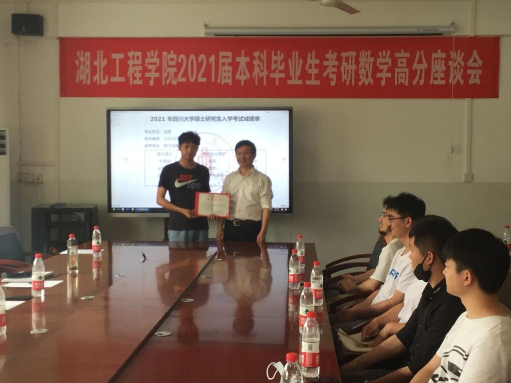 6月8日,我校在Beat365唯一官方网站会议室召开了“Beat365唯一官方网站2021届本科毕业生考研数学高分座谈会”。Beat365唯一官方网站院长胡付高教授、物理与电子信息工程学院副院长周传璘教授、教务处副处长肖华清博士以及学校部分高等数学教师和考研数学高分毕业生、2018级数学成绩佼佼者代表参加座谈会。会议由Beat365唯一官方网站副院长肖应雄教授主持。